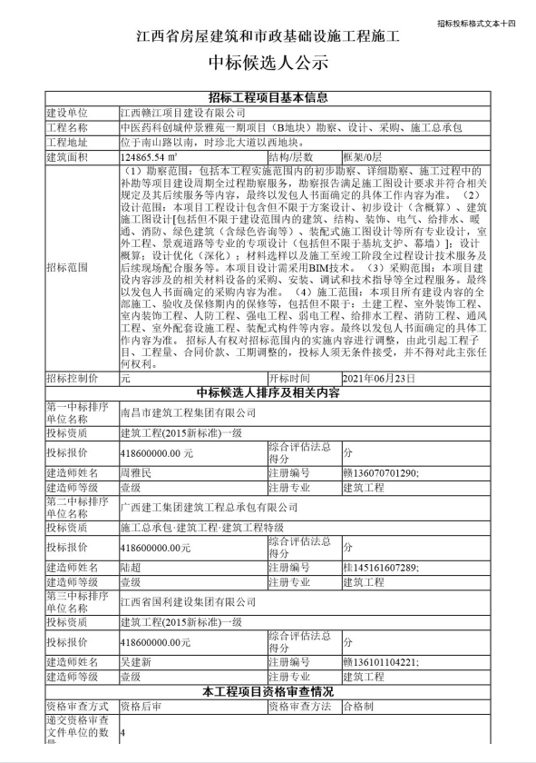 首頁(yè) > 中標(biāo)公示 > 中標(biāo)公示 > 中醫(yī)藥科創(chuàng)城仲景雅苑一期項(xiàng)目(B地塊)勘察、設(shè)計(jì)、采購(gòu)、施工總承包中標(biāo)公示